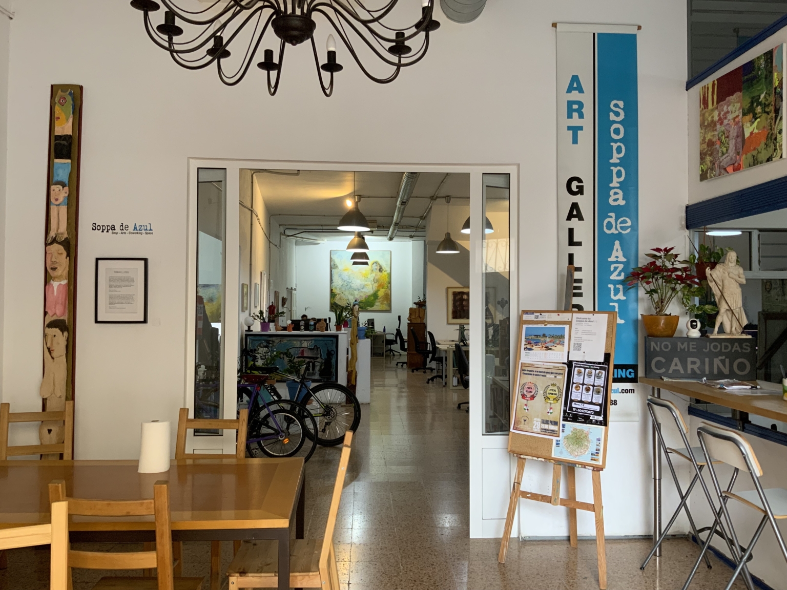 I've been renting a table for work in Soppa de Azul for the past 5 months, and it's been a fantastic experience! The space is perfect for digital nomads, with all the essentials you need to work productively and comfortably. You’re surrounded by inspiring art that adds an amazing creative energy to the space.