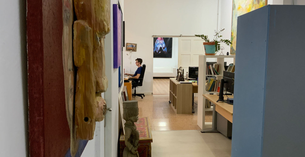 There's always a great atmosphere, with people from different countries. It's a great place to work remotely, surrounded by art, good company, and with the beach very, very close.
