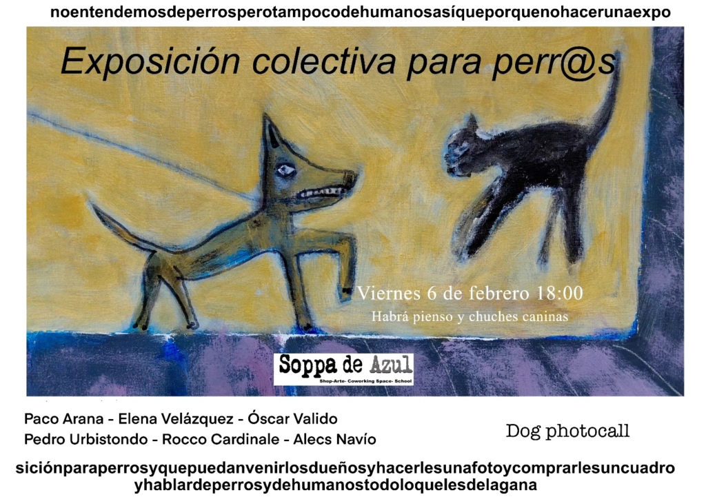 Una acción artística. Solo artística y social. No reivindica nada .No entendemos de perros pero tampoco de humanos así que por qué no hacer una exposición para perros y que puedan venir los dueños con sus perros y hacerles una foto y comprarles un cuadro y hablar de perros y humanos todo lo que les dé la gana.