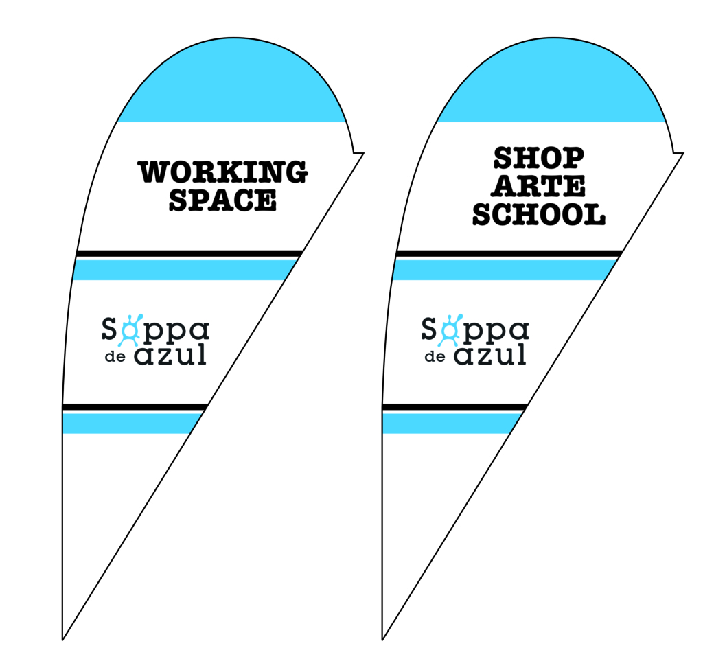 En nuestra política de no destacar o fundirnos un poco en la estética del barrio, hemos visto que nos bandera blancas y azules colocadas en la puerta de nuestro espacio nos pueden ayudar a ser vistos, a que los que bajen por la calle Faro sepan que aquí hay algo, y además algo muy chulo, interesante, creativo y singular, Soppa de azul