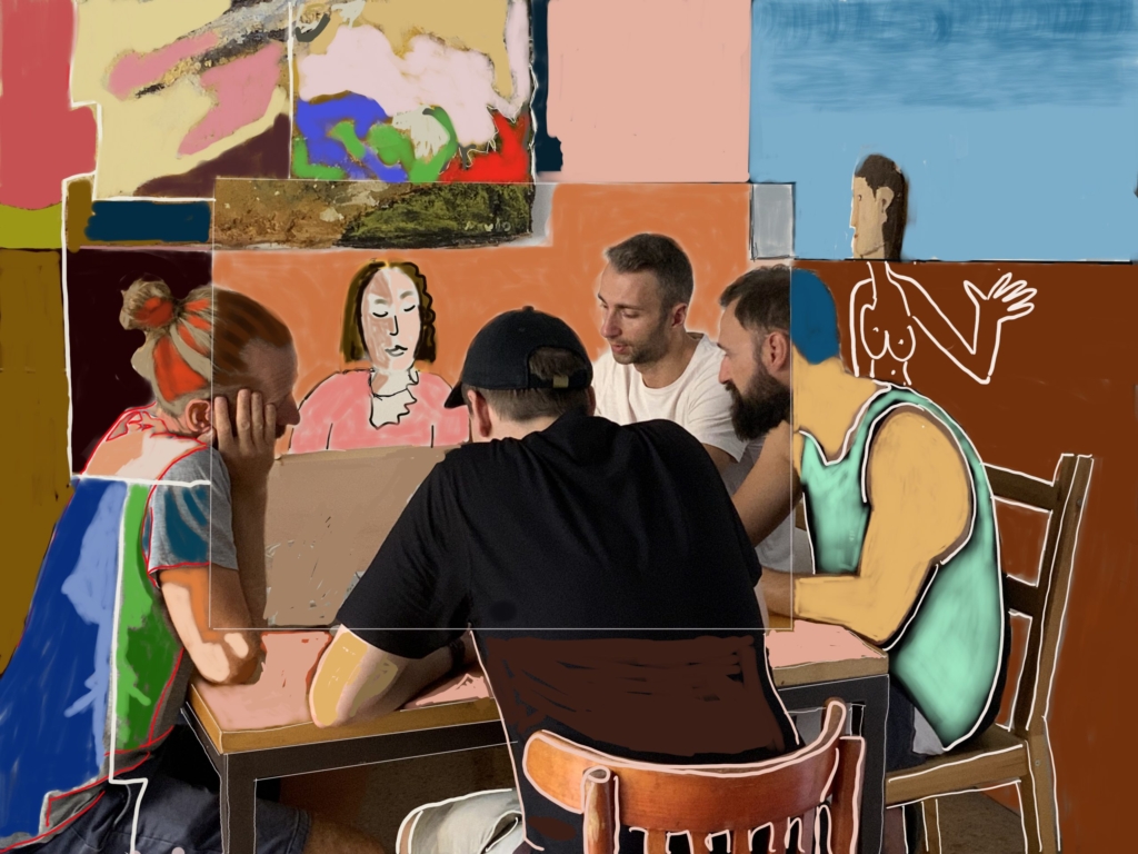 The Photo is the Alecs´s Painting calle Lunch with Domenico with another 3 Soppa workers